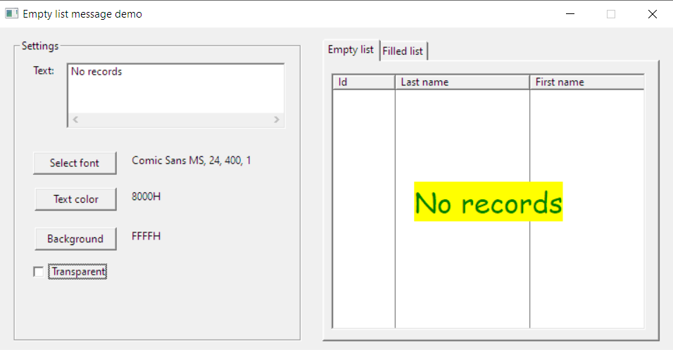The way I’ve done this is in each Window to add a PROMPT or STRING after the LIST with the text. Then Hide/UnHide that in the proper Browse embed like ABC BrowseClass.ResetQueue using RECORDS(SELF.ListQueue) or Legacy has 2 embeds: “Browser, records found” and “Browser, no records found”. For a hand coded LIST you can also do it this way.