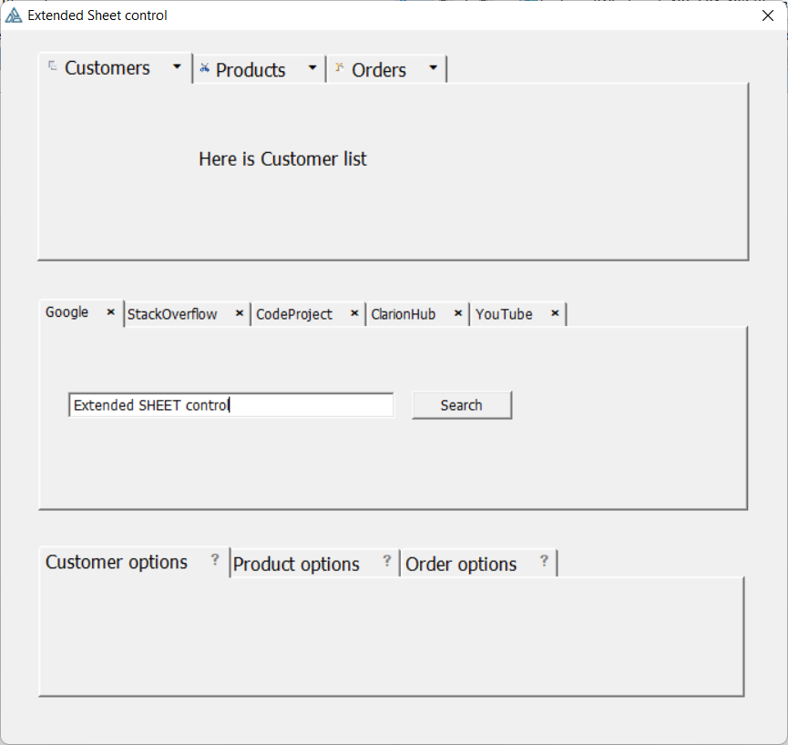 Sheet Extender is a class that allows to add a small button to each TAB control. This button has no default action, the demo demonstrates