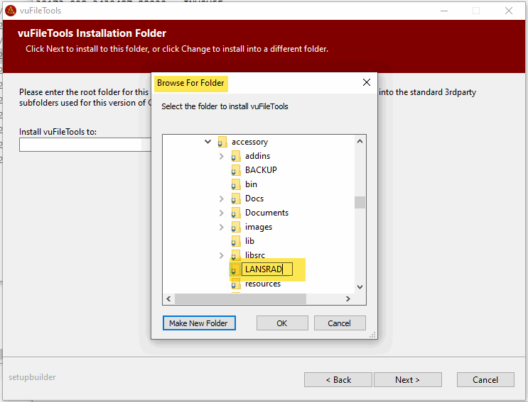 Note that you will see references below the LANSRAD folder regarding 3rdParty, etc because this custom option was intended to “dump” the files into a location such as C:\vuFileTools and let you move them where you want them and it shows the old C5.5/C6 style folders too.