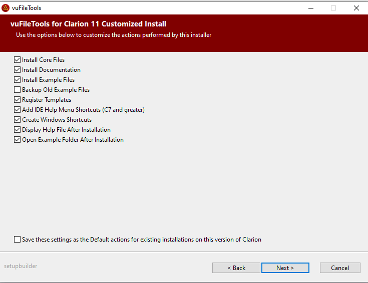 It also offers a chance to pick a version of Clarion supported in the installer even if SetupBuilder was unable to detect it.