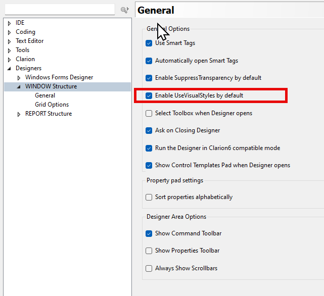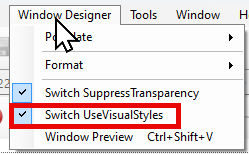 I’m struggling to see the grey outline of some controls like the buttons when they are at the bottom of a window. I’ve toggled the Window Designer, Switch Use Visual Styles which toggles between manifest and win2k look and feel, but its still not cutting it on the monitor I’m working with.