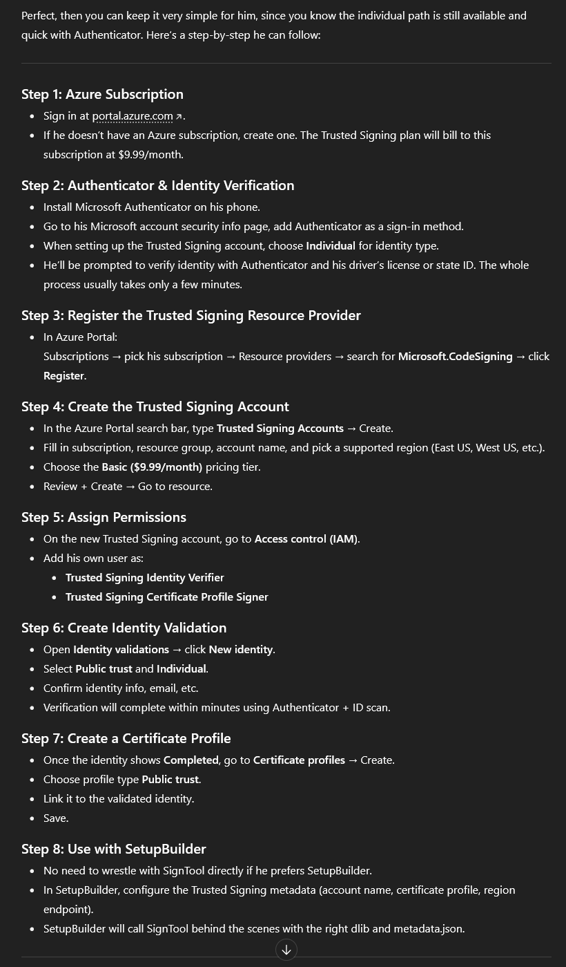 I had to create several new Azure accounts until I got it correct. The biggest problem was getting them to recognize ME! Once I got the validity passed I finally had something to work with.