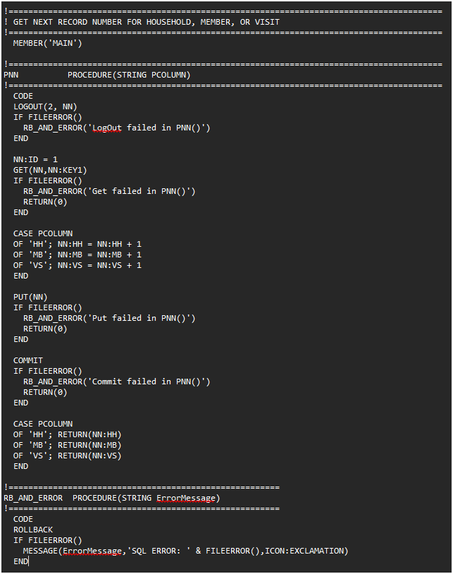 ! GET NEXT RECORD NUMBER FOR HOUSEHOLD, MEMBER, OR VISIT