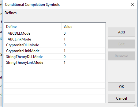 - Add the StringTheoryLinkMode and StringTheoryDllMode project defines to your project. Set