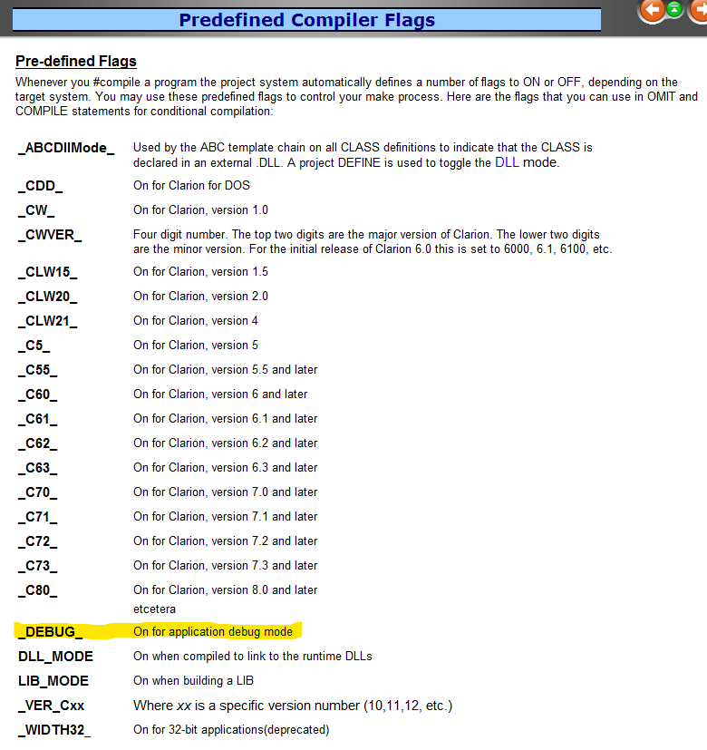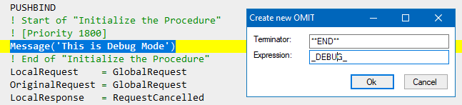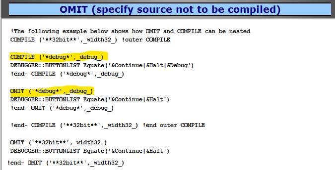 Omit/Compile popup window asks for a Symbol. I typed _Debug_. Be nice if it had a drop list of common choices.