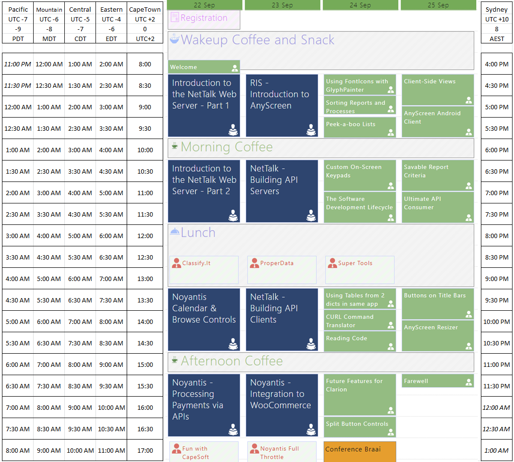 IMO a session to catch live will be “Future Features of Clarion” by Robert Zaunere the President of SoftVelocity. It’s on Saturday 9/24. Will Bob announce the 64-bit compiler?