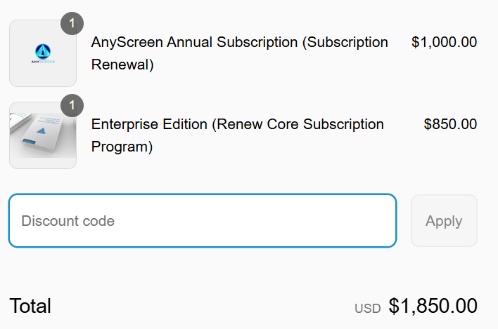 I just went to renew my CSP and i was expecting AnyScreen to be $800 it was $1000 like a new subscription. It said discount applied at checkout but nothing was adjusted. Thoughts?