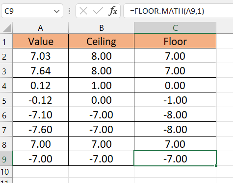 RoundAny function does not return value for CEILING(7.0). As Carl had pointed earlier, Ceiling(7.0) returns 7 as “equal to the specified decimal number”.