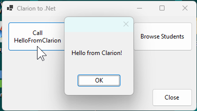 We used to do extensive Pinvokes and OCX from DOT NOT to clarion
