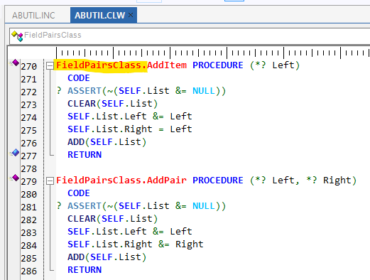 See the Class Name “FieldPairsClass” in column 1 plus Dot and Method name: