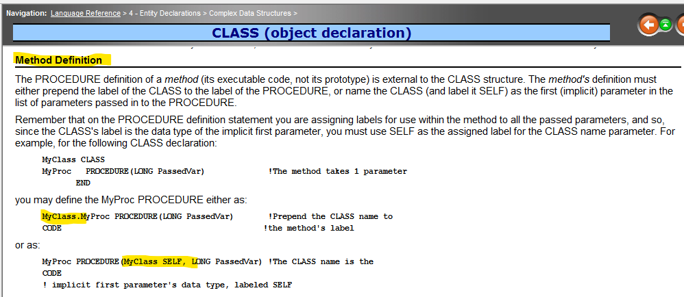 NameofMethod Procedure(ClassName SELF, Real X, Real Y) ! #1 <-- note SELF added