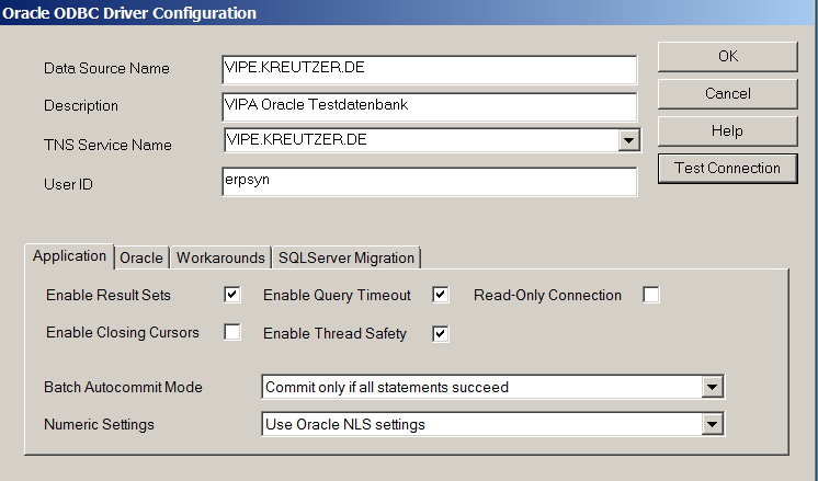 IMO, the Oracle driver is a better choice. If you are using the Oracle driver then you don’t have to do anything in the ODBC administrator. But using the ODBC route may be easier to set up a datasource for the first time. If you set up the 32bit ODBC successfully you should be able to import a table into the dictionary easily using that ODBC DSN.