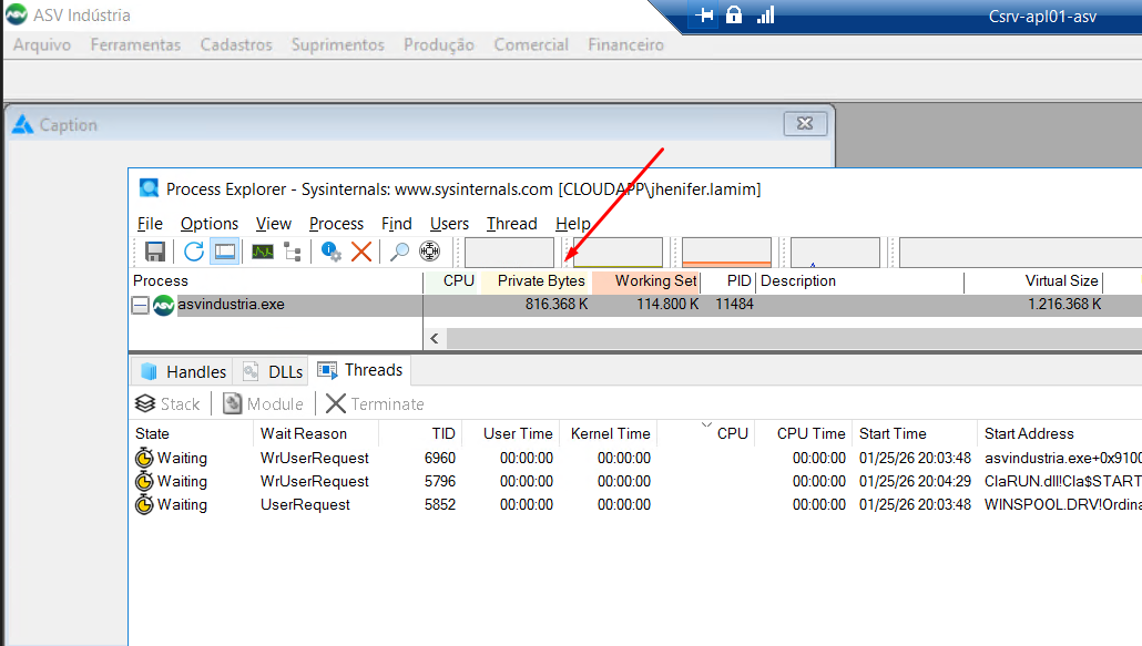 With every START, the private bytes increase considerably, and when it gets close to 1700 MB, the .exe closes.
