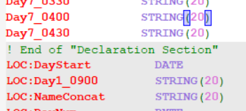 I have defined data in a procedure in two ways. One was simply through the IDE Data tab for my procedure and the other way was through an EMBED just before the procedure data (Start of “Declaration Section”). See clip of source. The data declarations are adjacent to each other in the source file, no code in between.