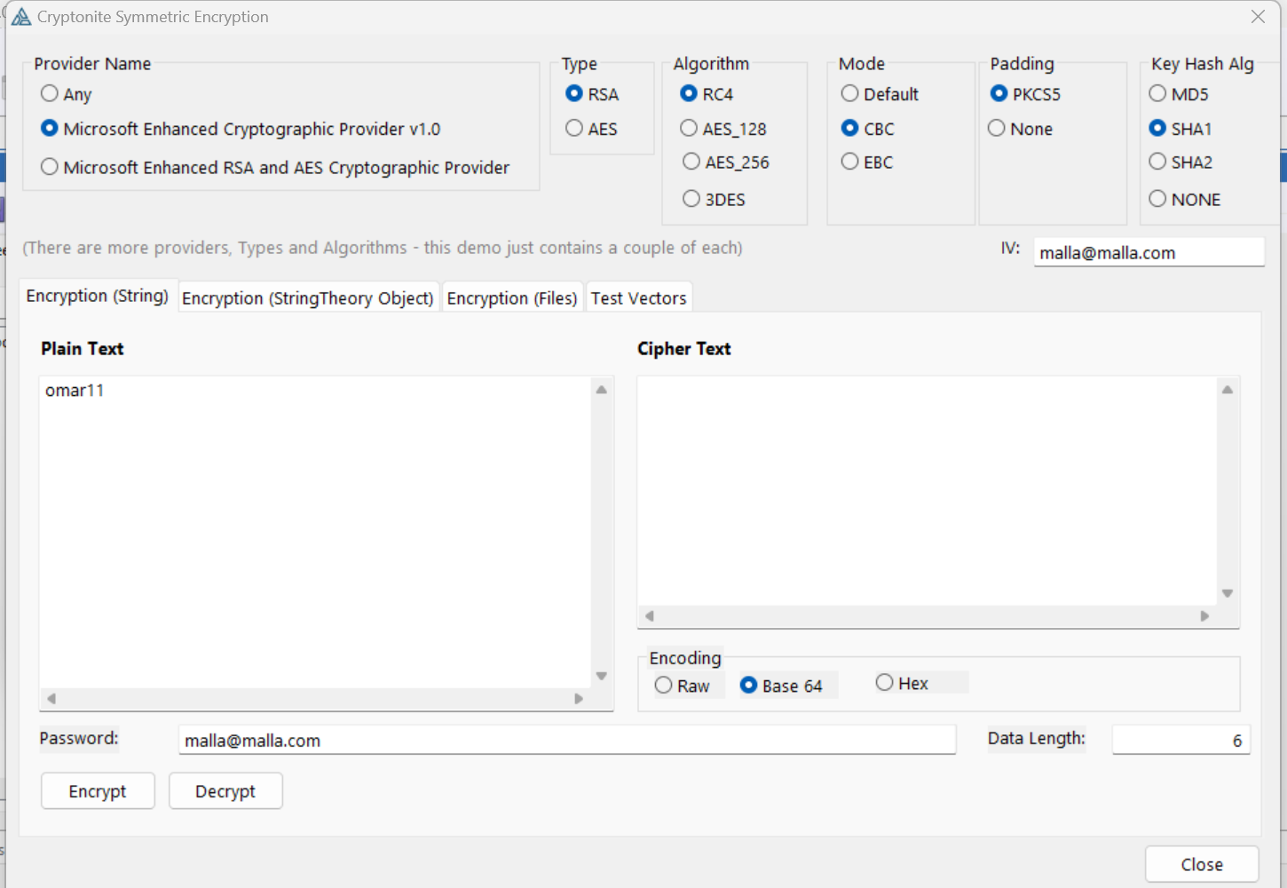 Is it possible to decrypt a value with Clarion, perhaps with Cryptonite, from an Encrypt in C#? I have a source code in C# with a password. I have tried it with Cryptonite but without result.