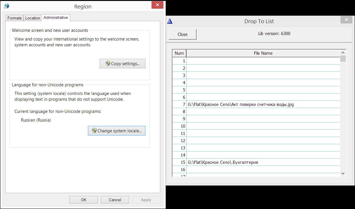 My Windows works on English language in Latin of course. My program is written in Latin also. On Desktop can be files with its names written in Latin and Cyrillic for Drag&Drop to the Browse. I didn’t try to set not-Unicode with Cyrillic - Serbia. I will try now.