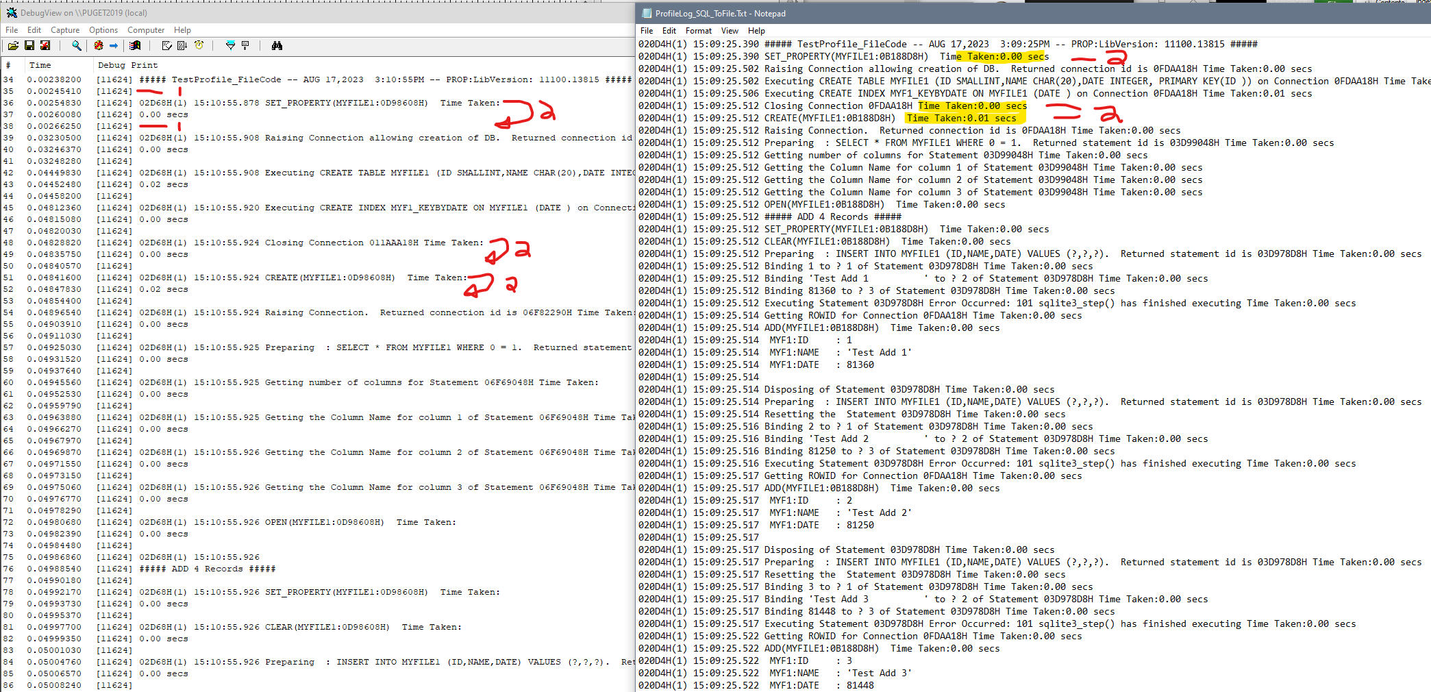 IF 0 THEN !1=Test Profile without UI, a way to test my DbFileAccessON() function