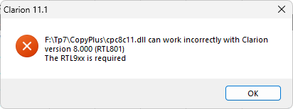 The problem is that when I try to dynamically load the C11 DLL inside my Clarion8 app I get the following message:
