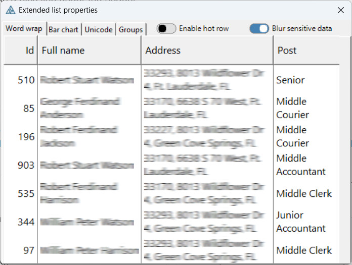 Blurred sensitive data: