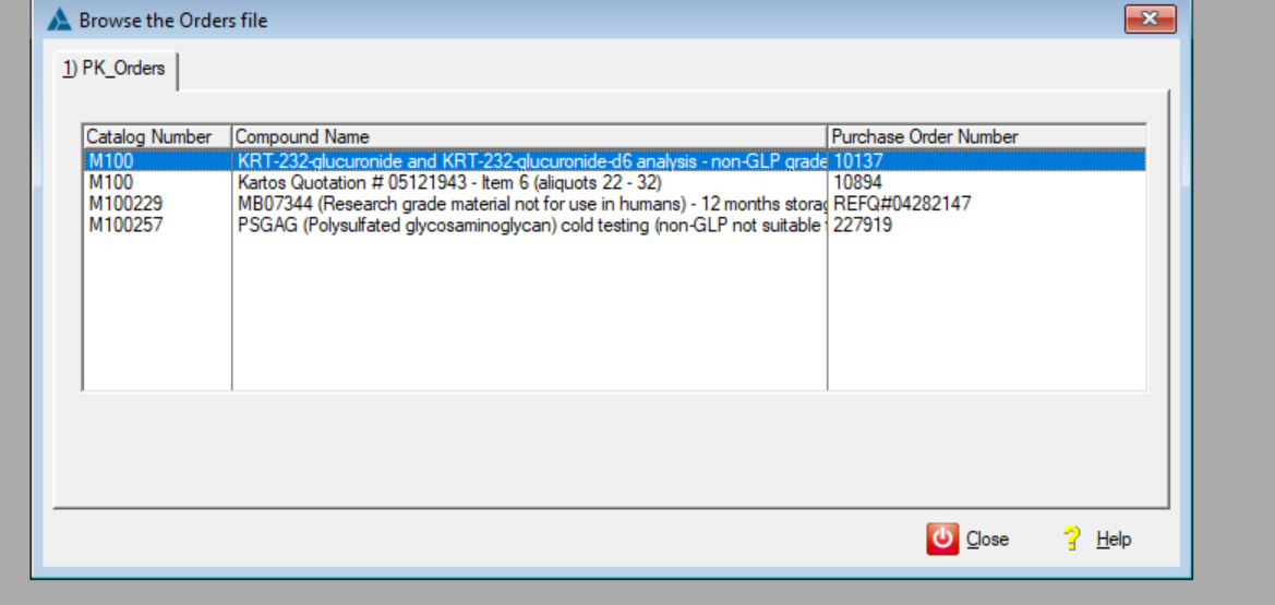 FROM(Queue:Browse),IMM,#FIELDS(Vie1:CatalogNumber,Vie1:Compound_Name,Vie1:PurchaseOrderNumber), |