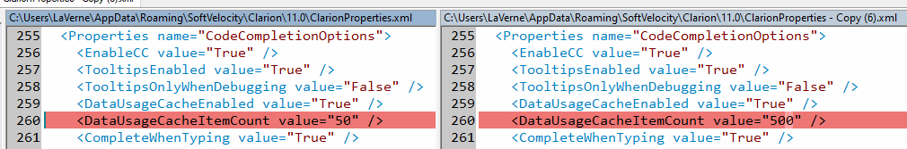 TrimProperty(‘C:\Users\Geoff\AppData\Roaming\SoftVelocity\Clarion\11.0\ClarionProperties.xml’,‘FindPatterns’,‘<0C3h,0BFh>’)