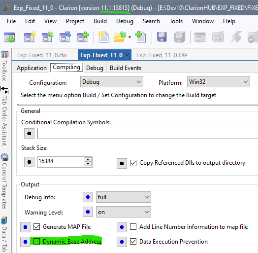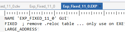 I confirmed in 11.1.13815 it DOES work to use FIXED as long as “Dynamic Base Address” (ASLR) is turned Off in the Project settings Compiling Tab. I’m sure I would have tested this back in my post about 13622 breaking FIXED. I know that a feature of ASLR is it rebases EXE’s.