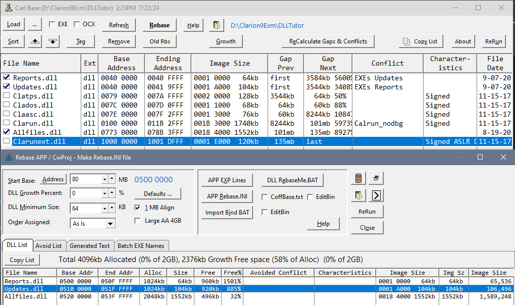 From Cla Mag years ago I have my “Carl Base” program to calculate the DLL addresses and make the INI file.