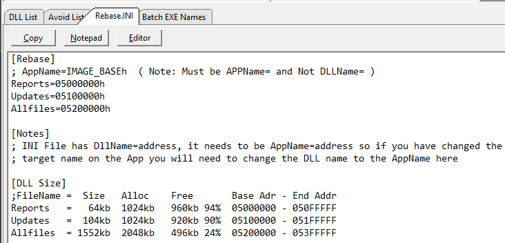 For the EXE’s it would be handy to be able to turn OFF Dynamic from the Template based on settings. There are usually not many EXE’s to change manually, but it would be nice to be all done from the Rebase.INI.