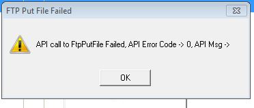 Error code zero when calling FtpPutFile indicates failure, but again we’d need to know exactly how your getting the error details.