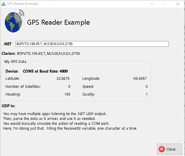 If you or anyone you know in the Clarion community work with GPS devices I have put together an app to read GPS data via COM ports and Garmin devices.