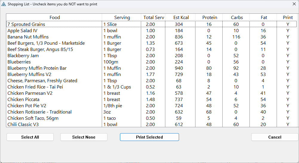 I have a source procedure PreviewShoppingChoices which displays a listbox after the user has built their mealplan. They can click on a record to remove it from their printout.
