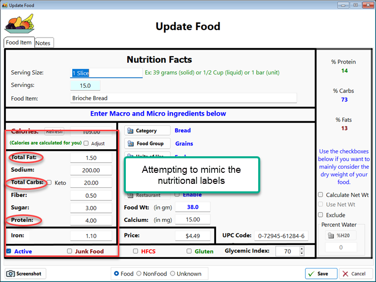 When I created the update form, I actually followed the nutritional labels that are on each food, as you can see.