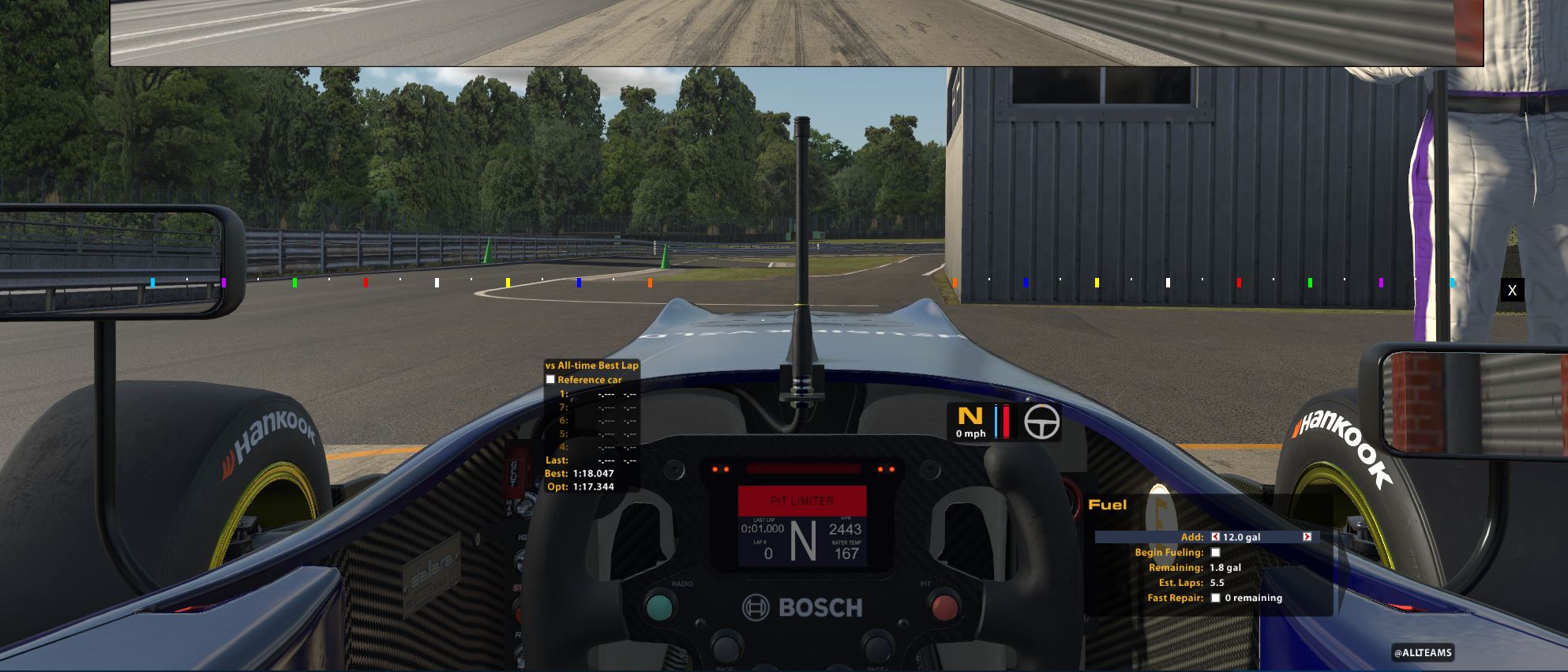 My goal was to create a transparent window that had colored lines. Using the lines, a driver in iRacing could use the lines as “turn-in points”. I have some more tweaking to do but the “guides” really helped me drive the Dalllara F3 at Oulton Park! A very fast track to drive. This works good for practice but in a race it would be too distracting. We sometimes use the details on the car driven as turn in points. On the F3 we use the rivets (right above the white steering wheel gadget).