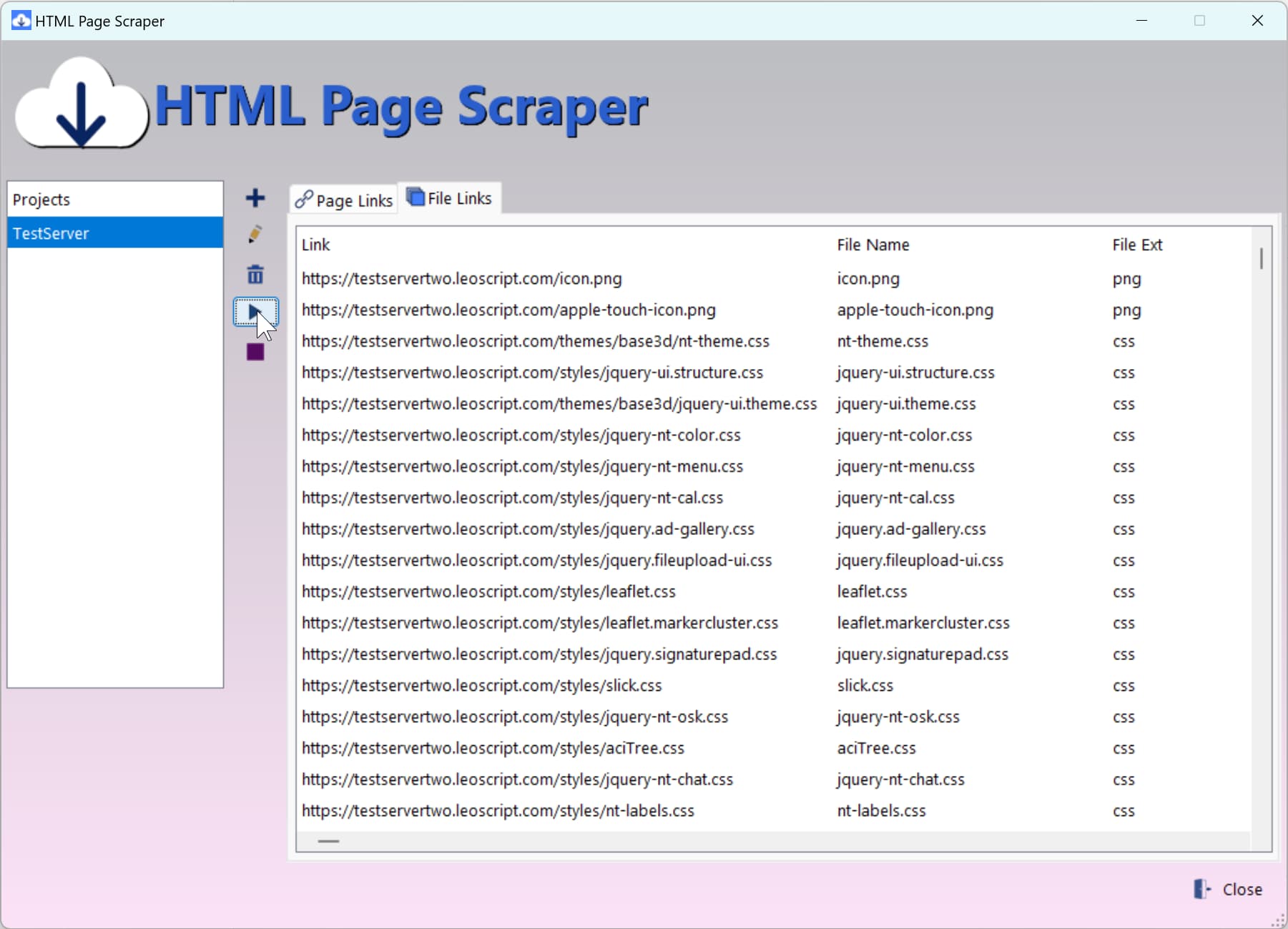 “Scrape” files such as JavaScript,CSS,HTML, etc., from a website.