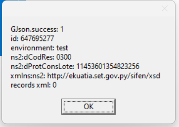 "ns2:dMsgRes": "Lote recibido con éxito",