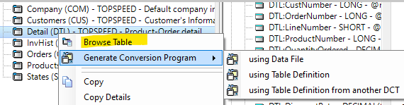 If you do not need a Conversion program to run at end user site, you can convert one time simply in the DCT by right clicking on the file and choose Browse Database. If the current file design does not match the disk TPS it will ask if you want it converted. It will not write a program.