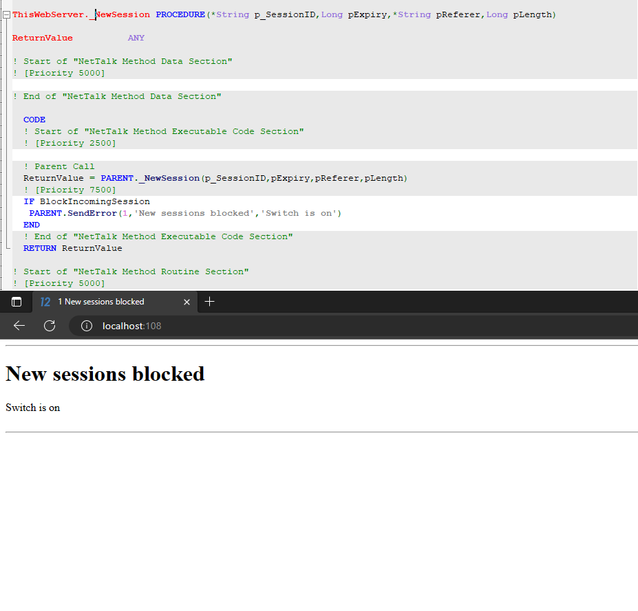 I just want to ask if blocking of new sessions in NetTalk is possible?