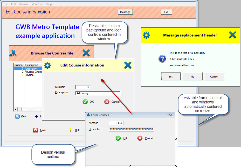 Windows can have global styles or locally set icons, caption backgrounds, and borders.