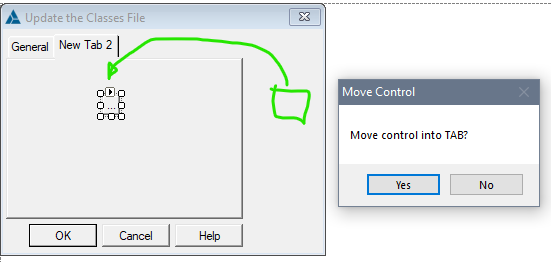 Then switch to the desired Tab and drag and drop the control on that. Click Yes on the Message to Move control.