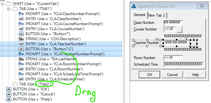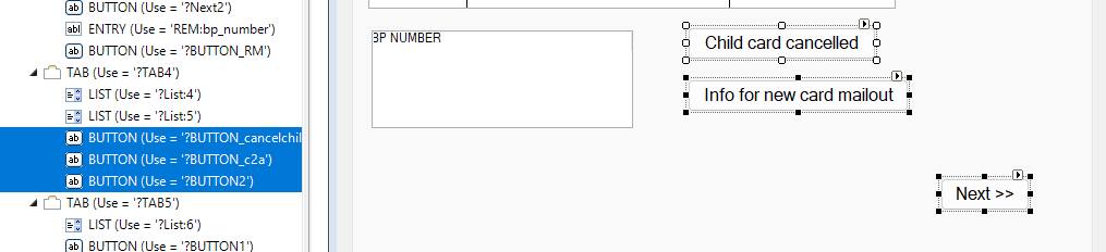 Then I reopen the Designer and check my Group by Deleting it and seeing I got all the controls. Of course you must Canel out of Designer or lose all those controls. Then in …Editor move that Move Group to the other Tab using Cut/Paste. Unfortunately that editor does not allow Collapse the Group so you have to find the END.