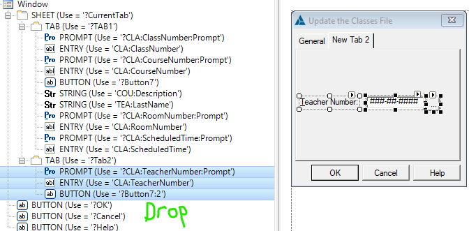 Tab 2 was selected showing the new controls I dropped