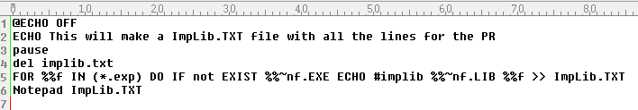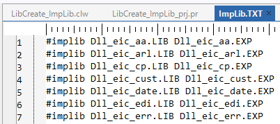 !Each line of the prj is simply an #implib statement followed by the name of the LIB to be created and the EXP to use when creating the LIB.