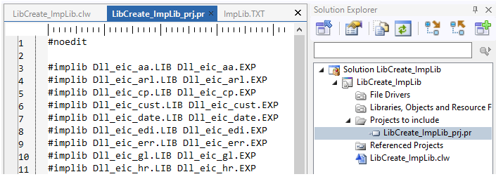 !This SLN under "Projects to Include" has LibCreate_ImpLib.PR Project file with lines like below that make the LIBs.