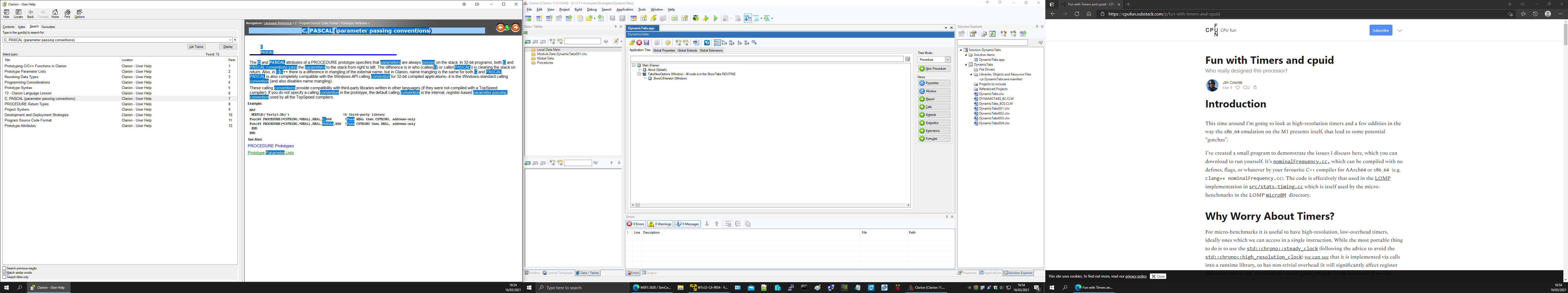 If C or Pascal is not specified, a clarion app defaults to the internal register-based parameter passing which from the wiki link reads: