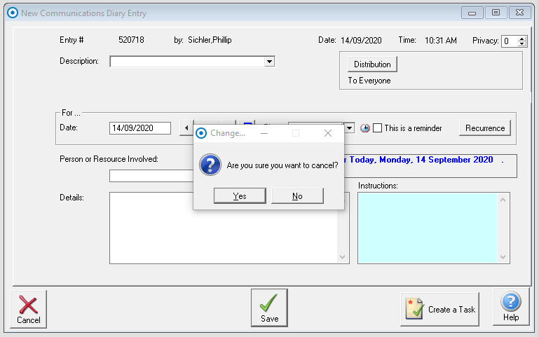 Just a default ‘Confirm cancel’ message window: