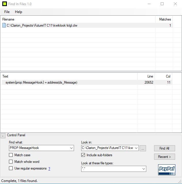 If I do a text search for ‘PROP:MessageHook’ there is only 1 result (out of all dlls and exes) in the global dll clw file: