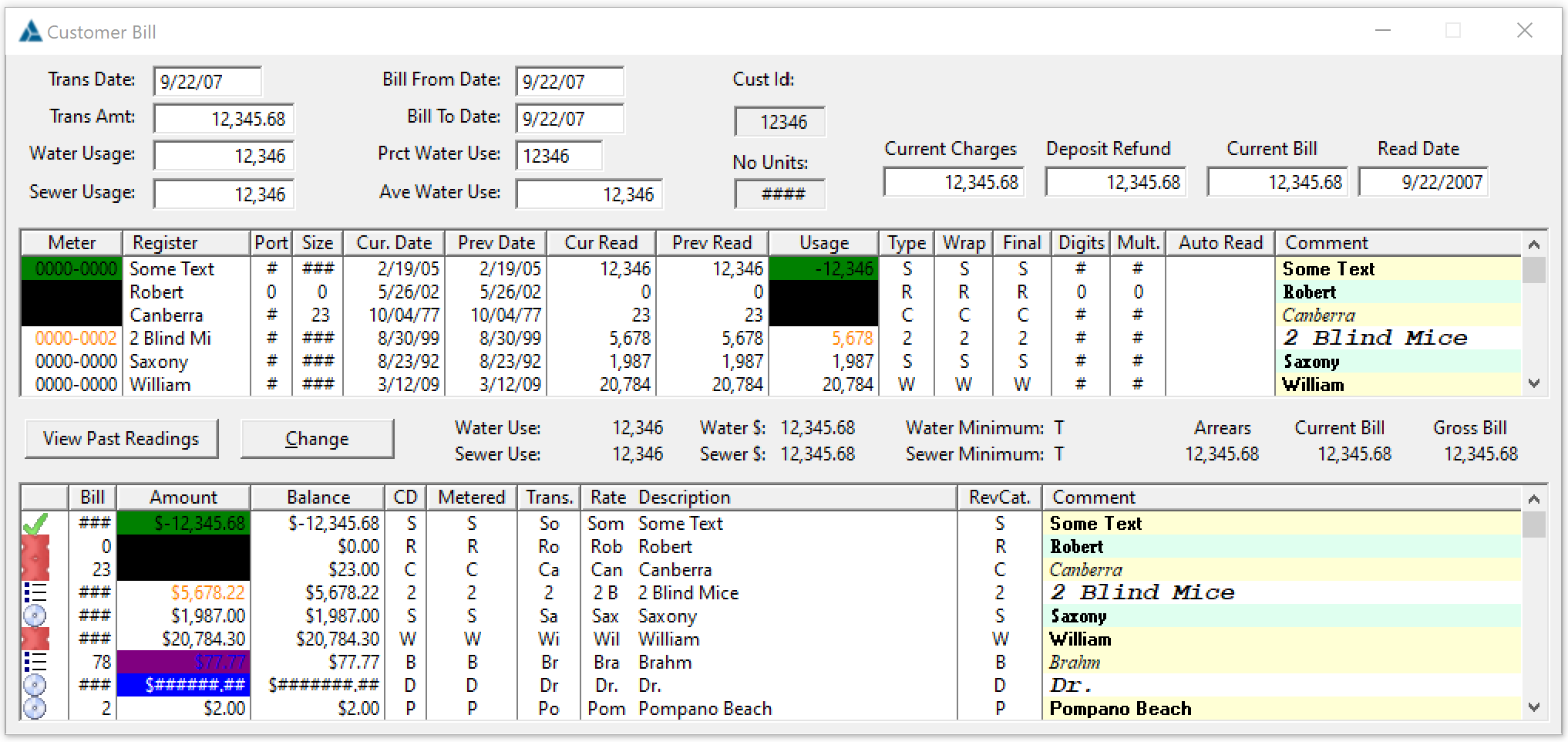 ! Sets sample data for Numbers to max 123,456.12, @d variety, @t @p @s
