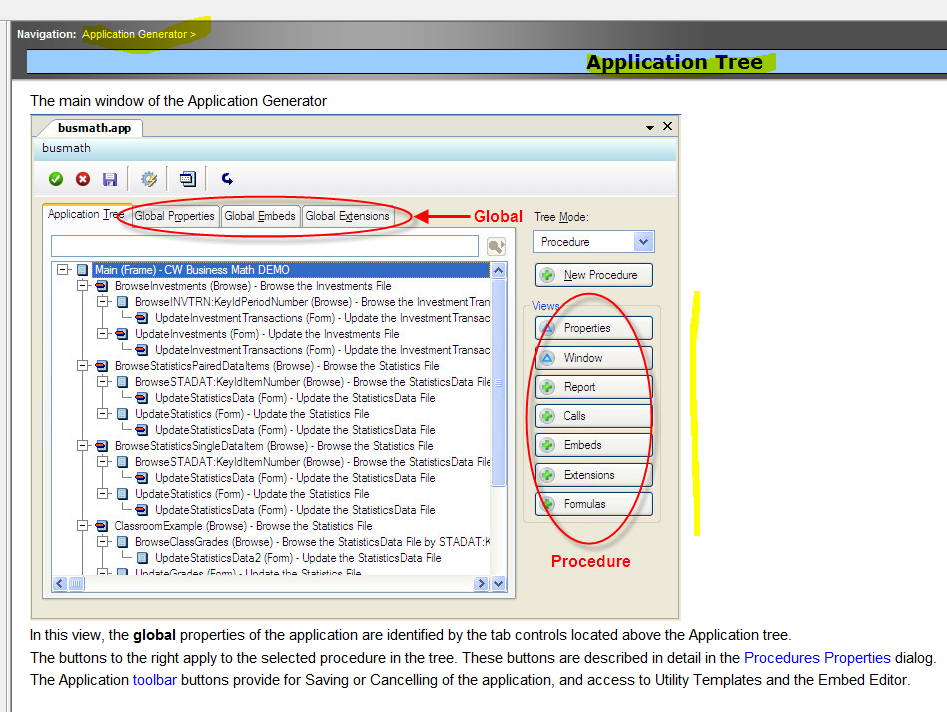 @Clarion_clarion can you please explain about what is properties, window, report, calls, embeds, extensions, formulas