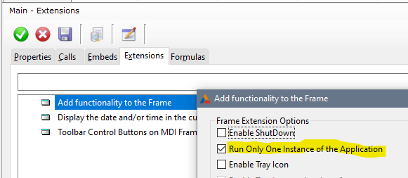 Sorry I didn’t let you know earlier … What you want may be built into Clarion. See the Frame Extension template “Add functionality to Frame” which has the option “Run Only One Instance”.
