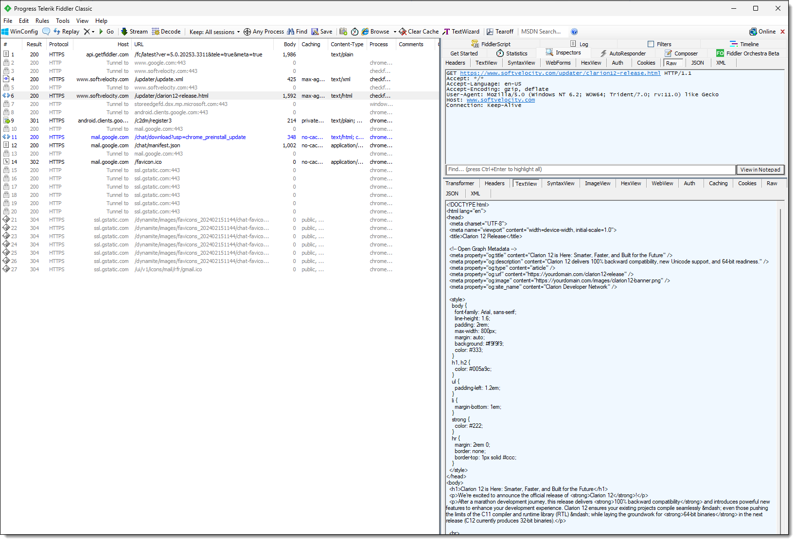 I decided to install Fiddler on this dev VM to see what the button was doing. (It fetches an /updater/update.xml file and then the changelog URL specified in the XML.)